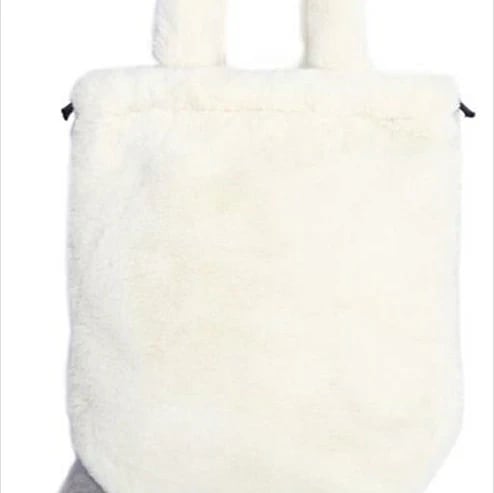 ファー巾着バッグ(猫グッズ ネコ雑貨 ねこ柄 かわいい A4対応 黒猫 ふわふわ 尻尾 ノアファミリー 秋冬新作 ギフト