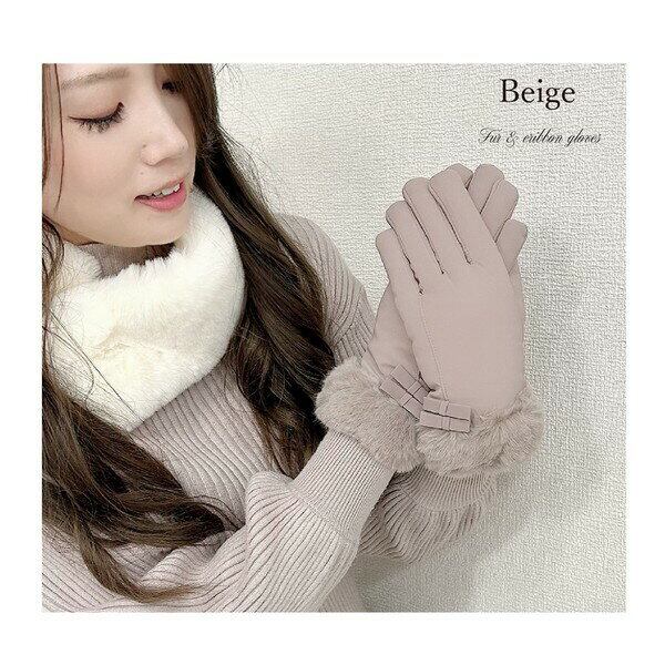 暖かなファーとフェミニンな小さなリボンがついた手袋。