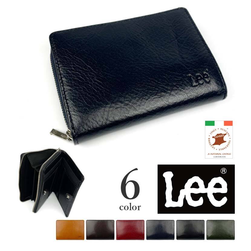 クリスマスに☆【全6色】 LEE リー 高級イタリアンレザー ラウンドファスナー 二つ折り財布 ショートウォレット