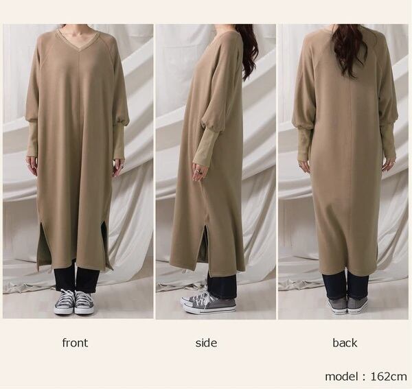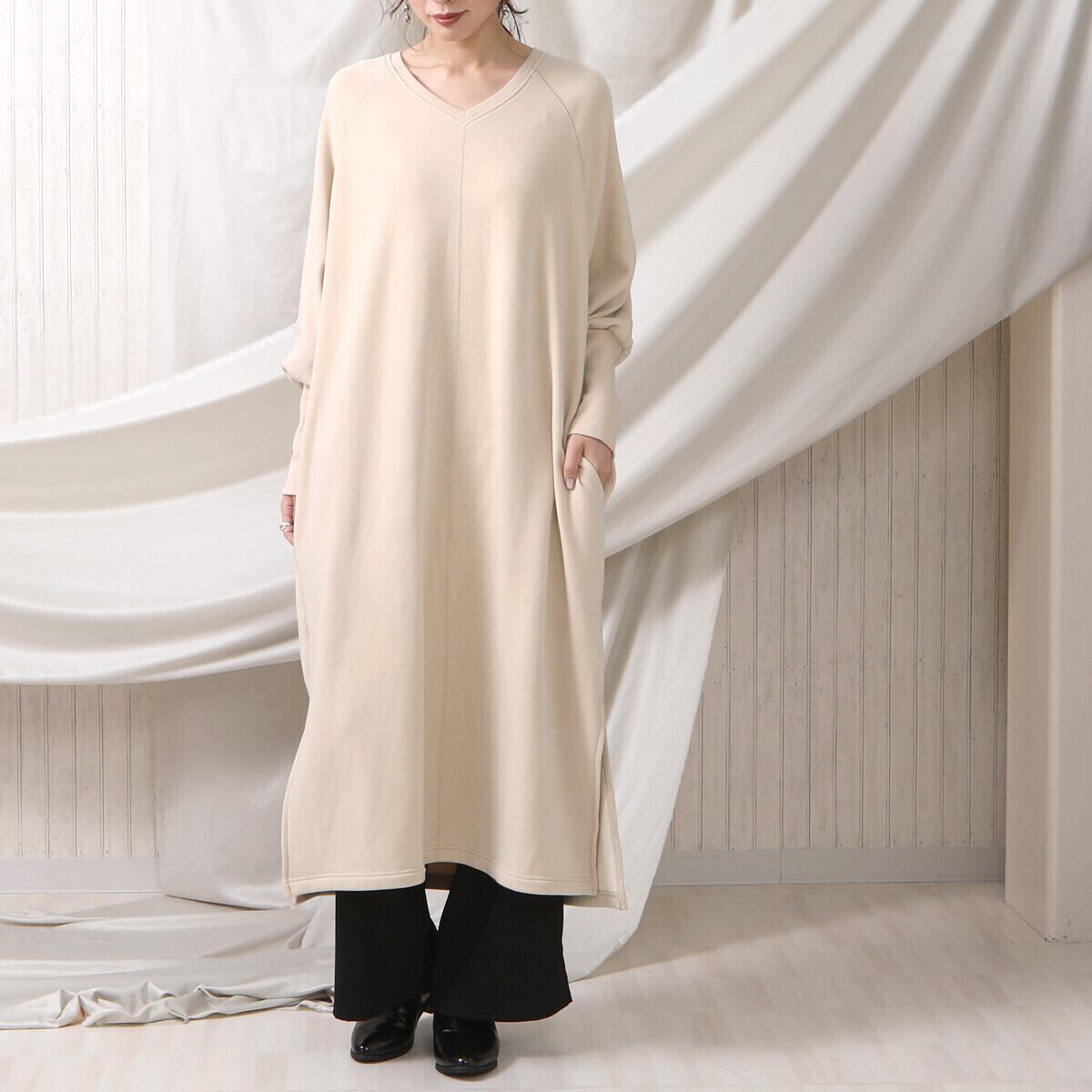 裏シャギー アルガンオイル加工 レディース ワンピース Vネック ロング あったかシリーズ ルームウェア Vネック カジュアル きれいめ スポーティ 2023秋冬 カラー アイボリー モカ ブラック ブルー サイズ F