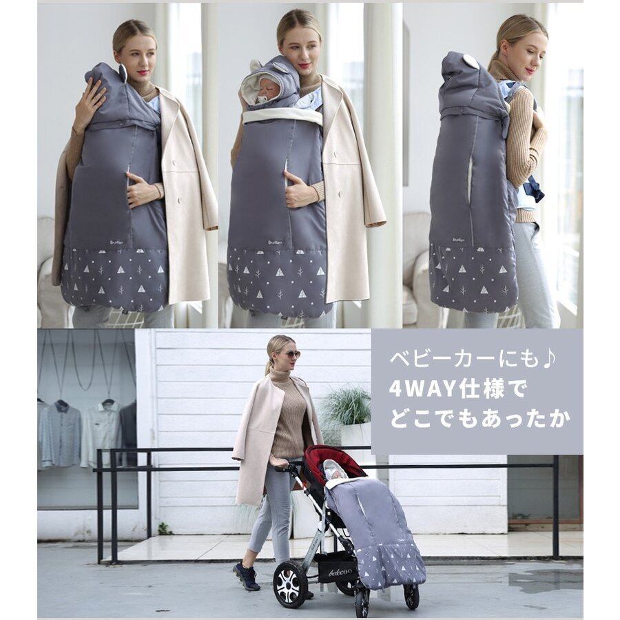 の抱っこ紐に被せて防寒防風お布団気分♪付属のフードで耳付きで可愛くお顔も防寒♪ベビーカーにも♪4WAY仕様でどこでもあったかお子様の快適性はもちろん保護者の方も快適性もこだわった仕様。お子様の成長に合わせて使い方を変えられるので末永く活躍します。出産祝いなどにも人気です。素材:ポリエステル対象年齢:0~36か月 新生児季節:春秋冬サイズ:図参照(ケープ78*64cm, フード72*27cm) ※画像は、ご覧になっているモニターやPCなどの環境により、実物と多少カラーが異なる場合がございます。色味やサイズが異なるなどのクレームはご対応致しかねますので、ご了承ください