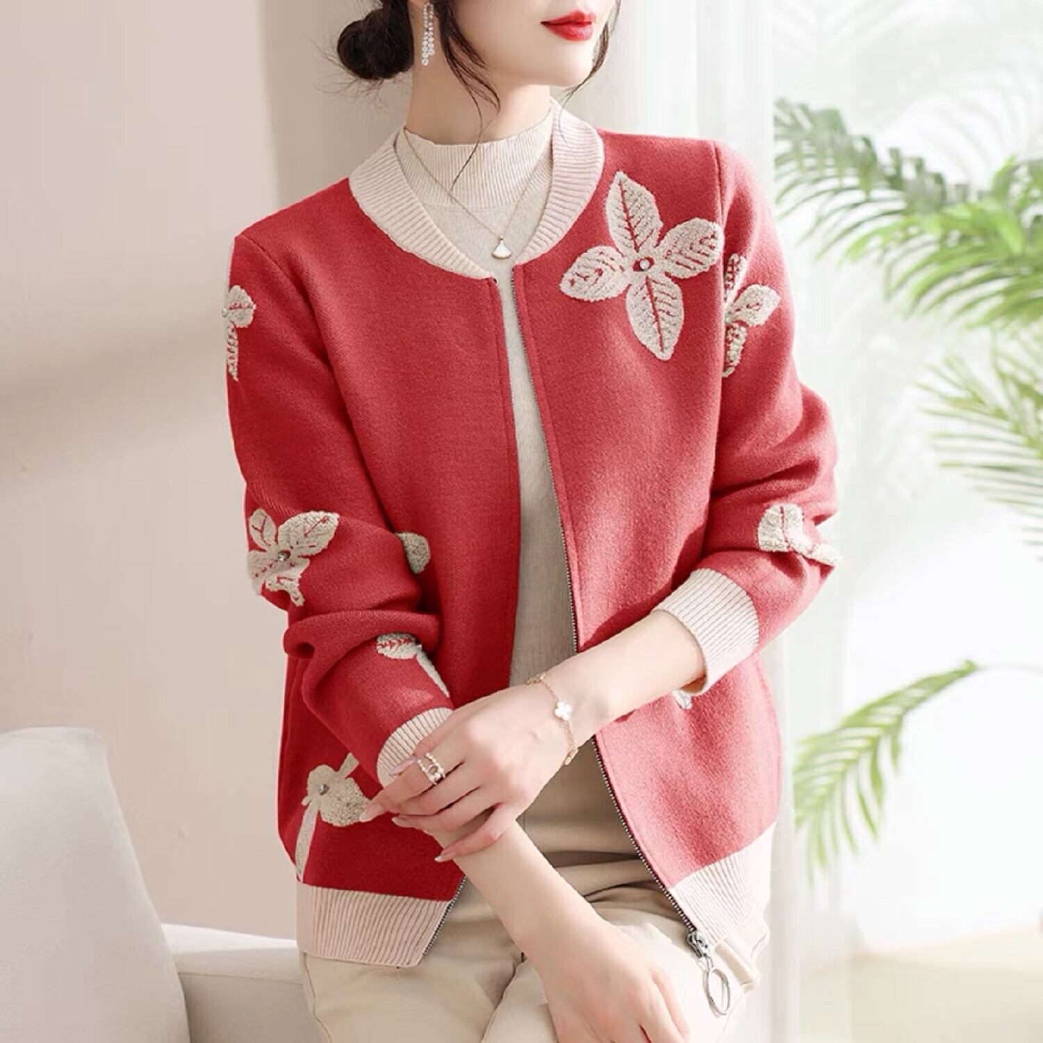 カーディガン感覚でさっと気軽に羽織りやすい刺繍ニットジャケットです。