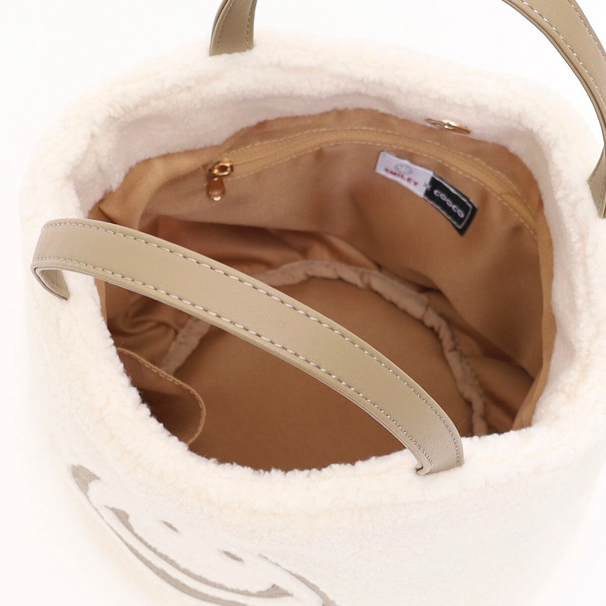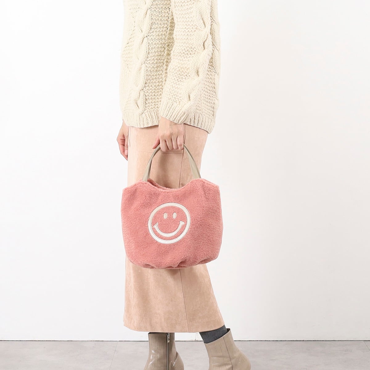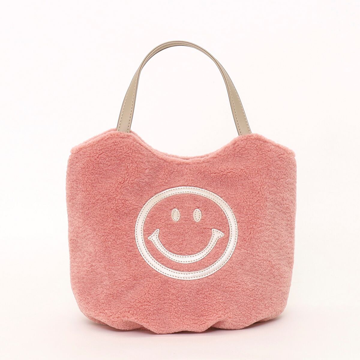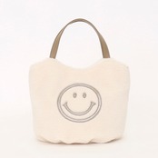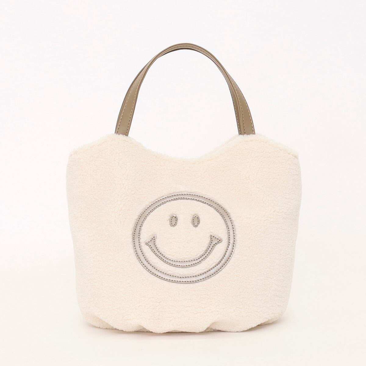 ボア素材でスマイリーフェイスを施したSMILEYトートバッグ。