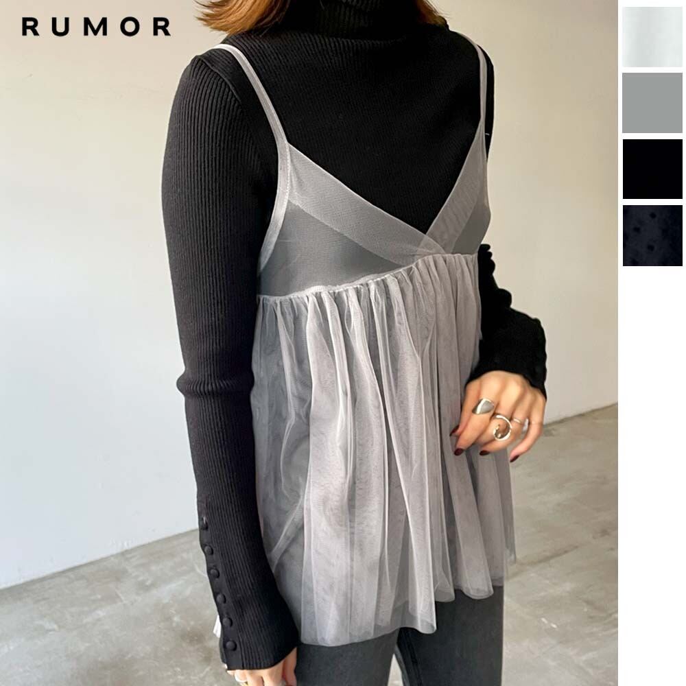 レイヤードスタイルに活躍するチュール素材のキャミソール