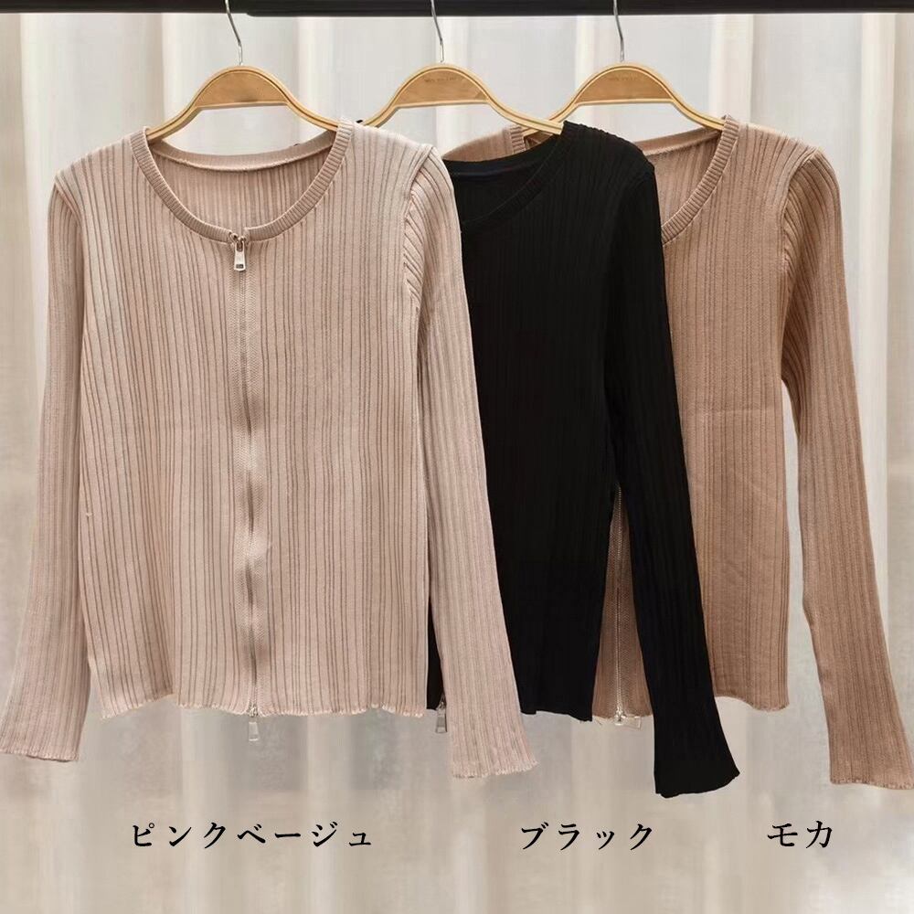 ジップアップカーデ コンパクトトップス レトロニット羽織り