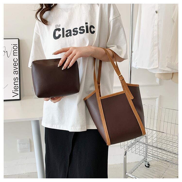 トートバッグ PUレザー バケツバッグ レディース ポーチ付き 手提げバッグ フェイクレザー バッグインバッグ オフィスカジュアル ハンドバッグ 大人可愛い