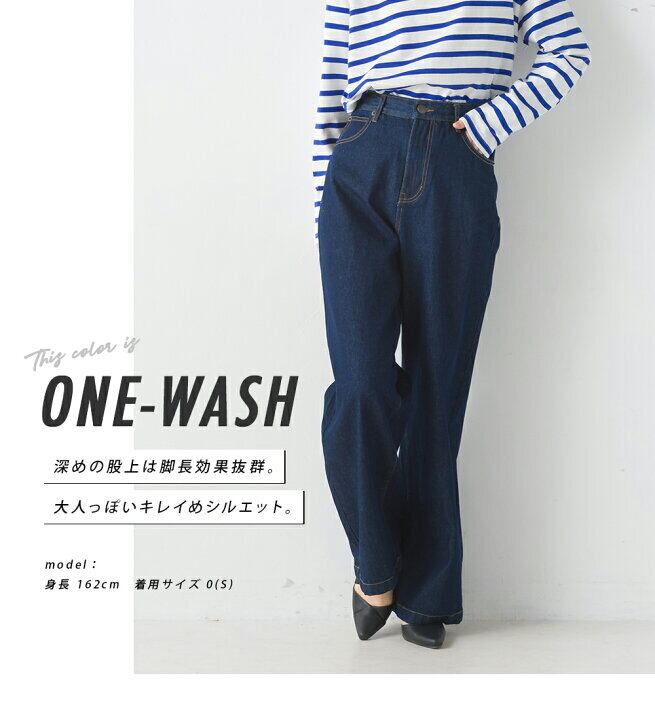 ハイウエストがスッキリとみせ、トレンドシルエットを作ってくれるワイドデニム。