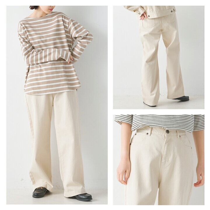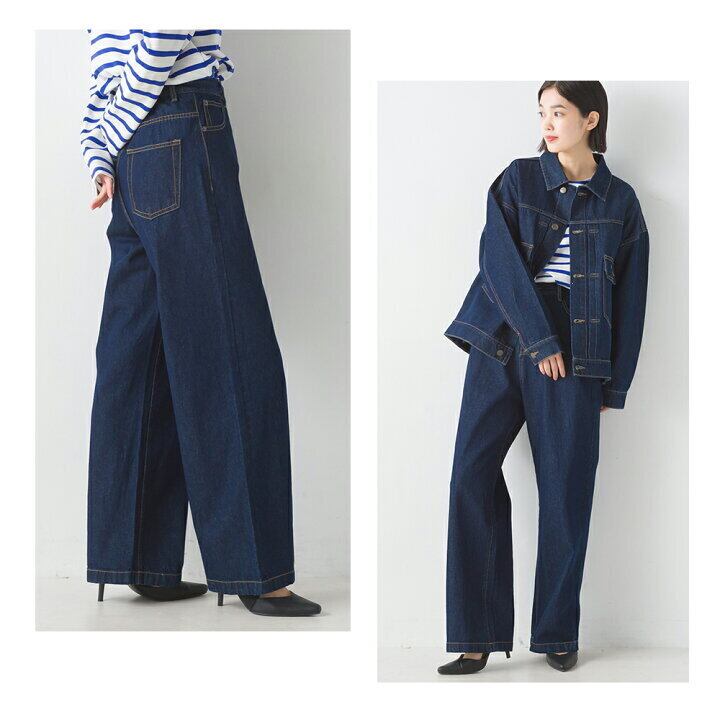 【OMNES】ハイウエストワイドデニムパンツ レディース ハイウエストデニム ロングパンツ ジーンズ ストレートパンツ カジュアル 脚長効果 HAPTIC ハプティック