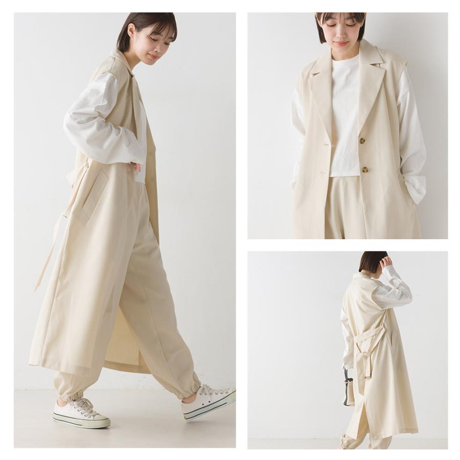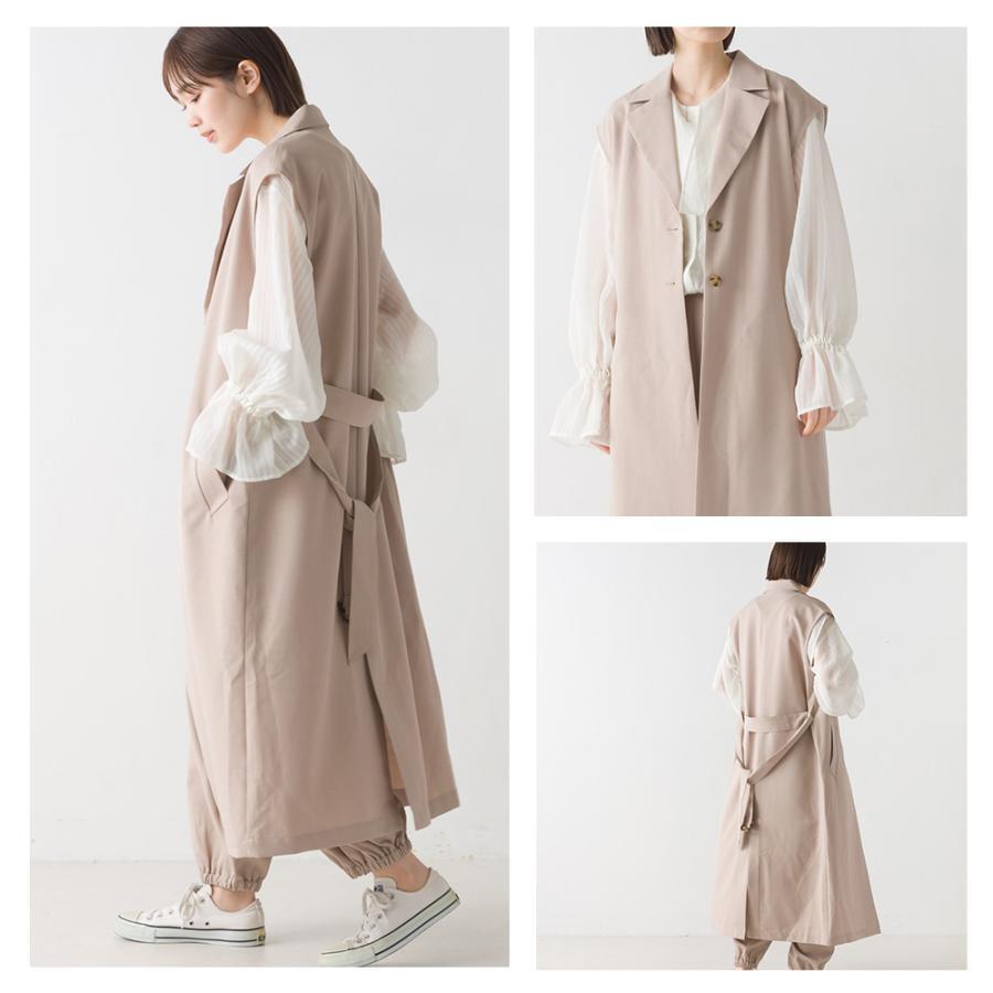 OMNES テーラードロングジレ レディース カジュアル フリーサイズ ロングベスト きれいめ 前開き 長め丈 ロング丈 ベルト付き