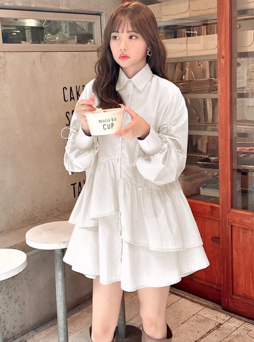 ドロストスリーブティアードミニシャツワンピース ホワイト フリー