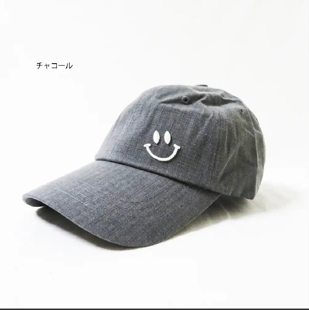 大人気のスマイルキャップ 春夏のキャップ スマイルが可愛いウォッシュ加工