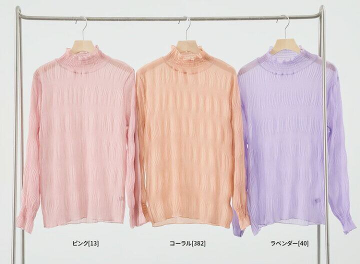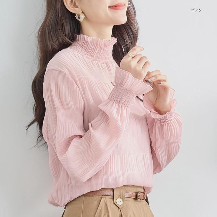 シアー トップス レディース トップス ハイネック シフォン ブラウス フリル 長袖 春 プルオーバー シースルー タートルネック 40代 可愛い 入学式 ママ 春夏