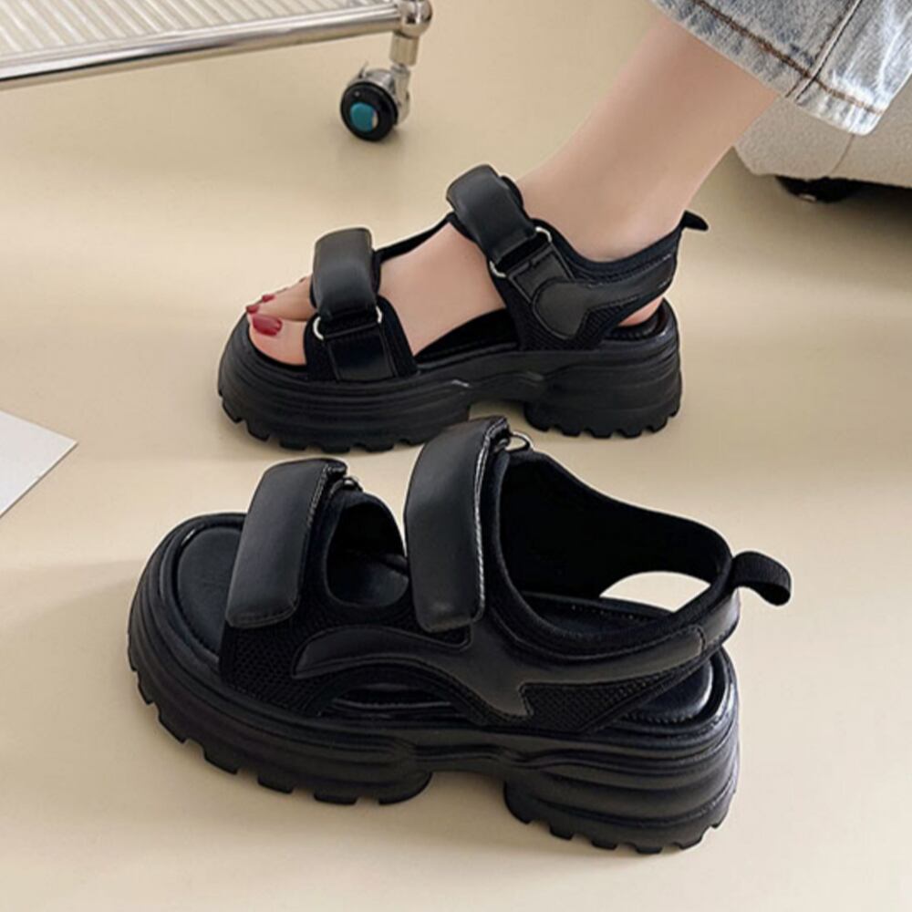 レディース 韓国 ベルクロ スポサン 走れる ベルトサンダル 5cmヒール 歩きやすい おしゃれ アウトドア 旅行 靴