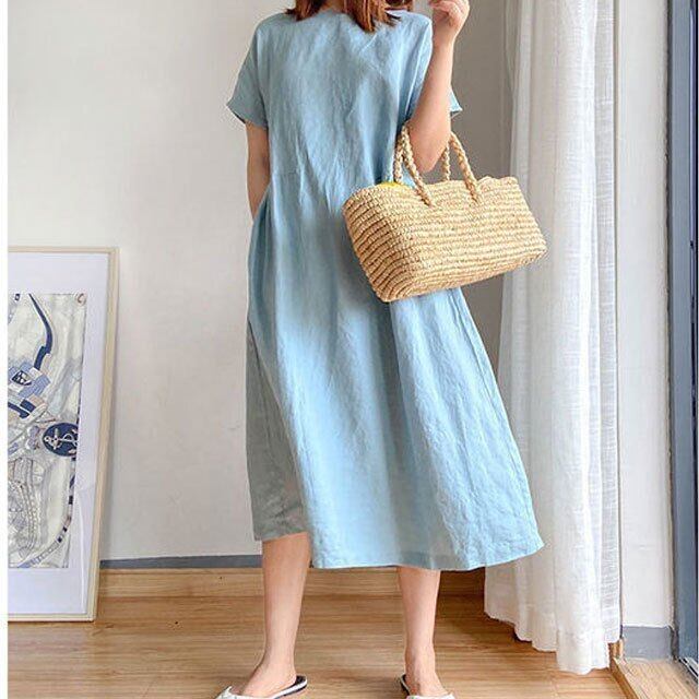 オシャレ ワンピース レディース 40代 おしゃれ Aライン 夏 ゆったり 無地 膝丈 お出かけ 体型カバー