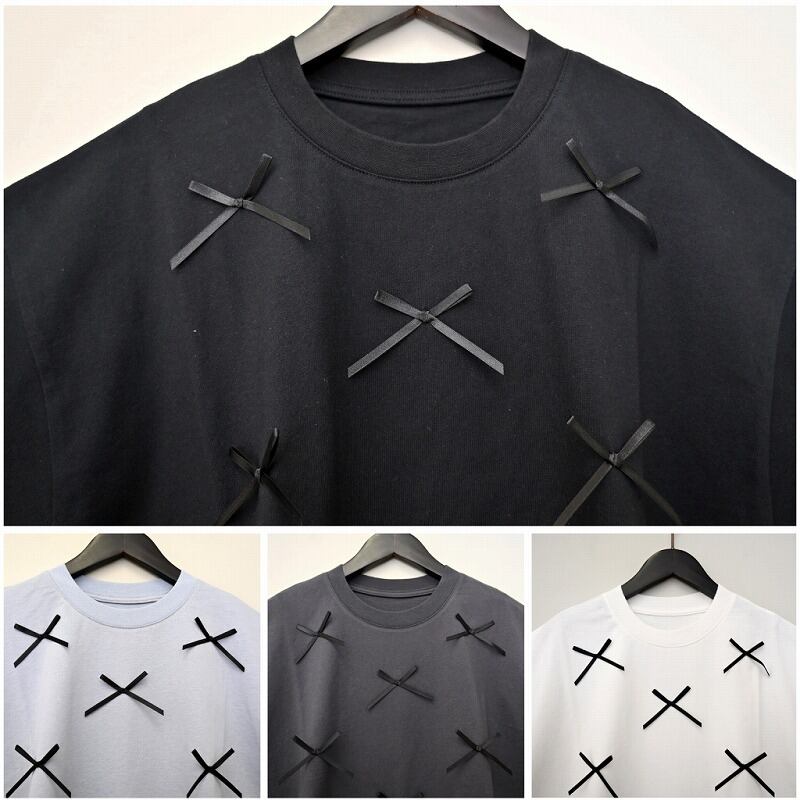 Tシャツの素材感、リボンのデザインも可愛くて好印象!リボンモチーフは全色ブラックで共通です!◎