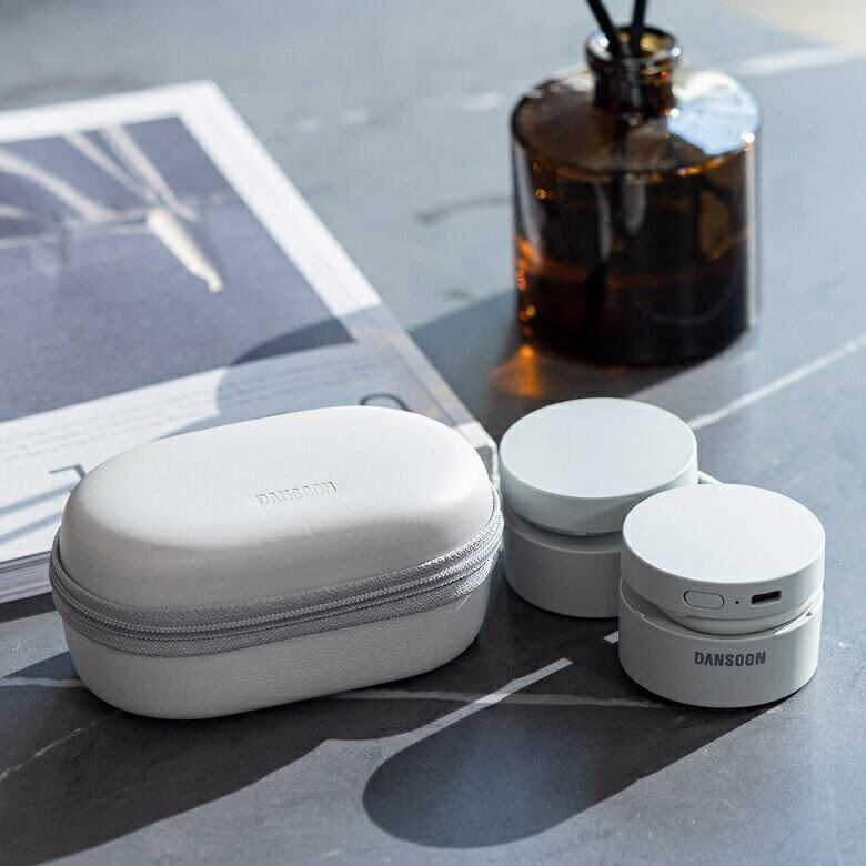 両手を自由に使える便利なハンズフリー式。羽根のないタイプで、髪や手を巻き込む心配もありません。