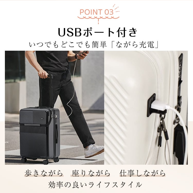 荷物 車輪付きスーツケース 機内持ち込み荷物 フロントポケット付き スーツケース USBポート付き 大容量収納荷物 耐衝撃性(24 inches)