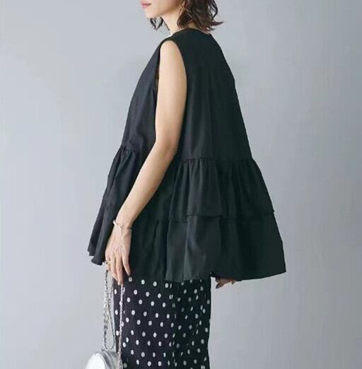 2024年夏新作 ブラウス シャツ ノースリーブ トップス レディース ラウンドネック 気質 オシャレ