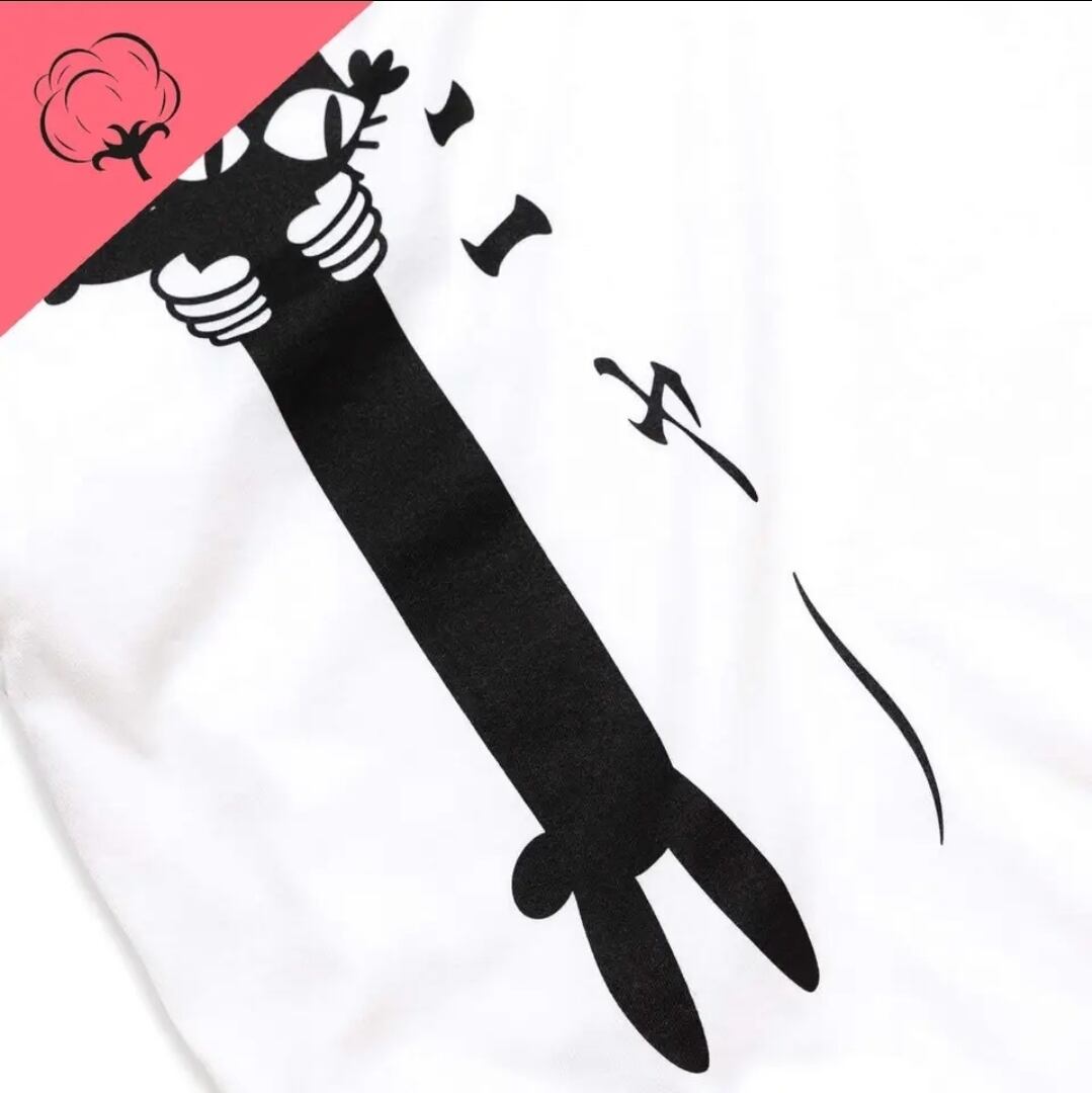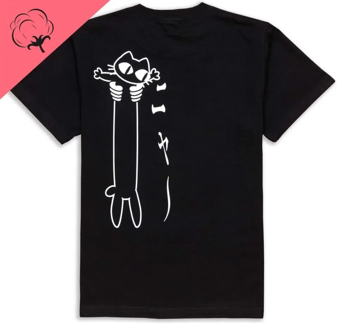 猫を持ち上げた時にのび〜〜〜る体がメチャメチャ面白かったので、思わずこんなTシャツ作っちゃいました。