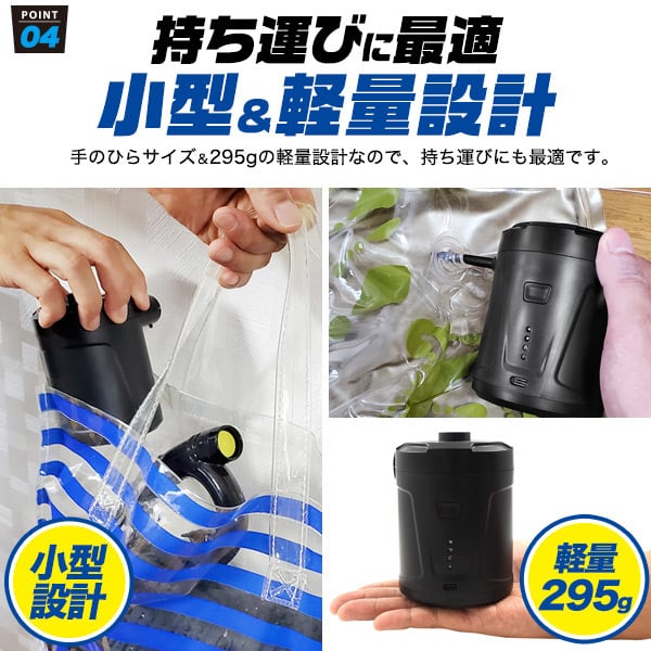 ノズル3種類付き 空気入れ/抜き両対応 充電式電動ポンプ 防災グッズ アウトドアグッズ 小型 持ち運び便利