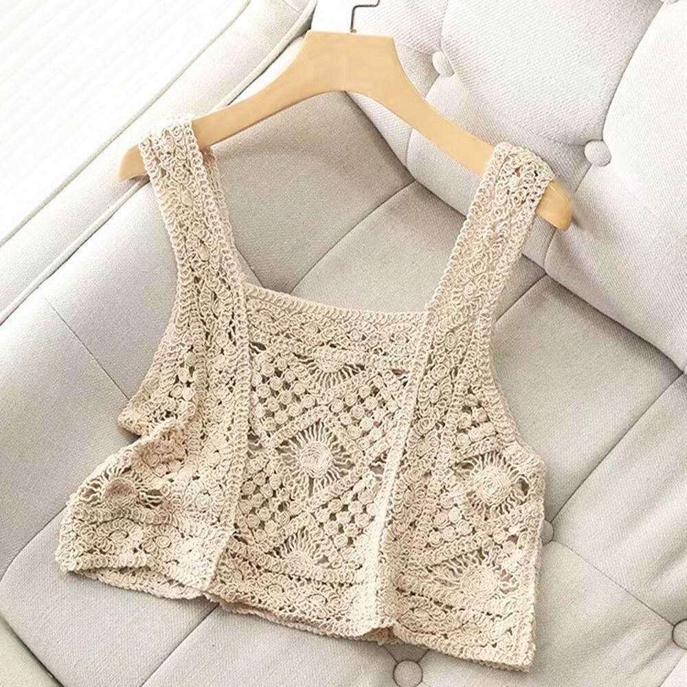 ニットトップス 大人可愛い 透かし編み ニットキャミソール 重ね着 セクシー ショート丈トップス サマーニット 肌見せ 着回し