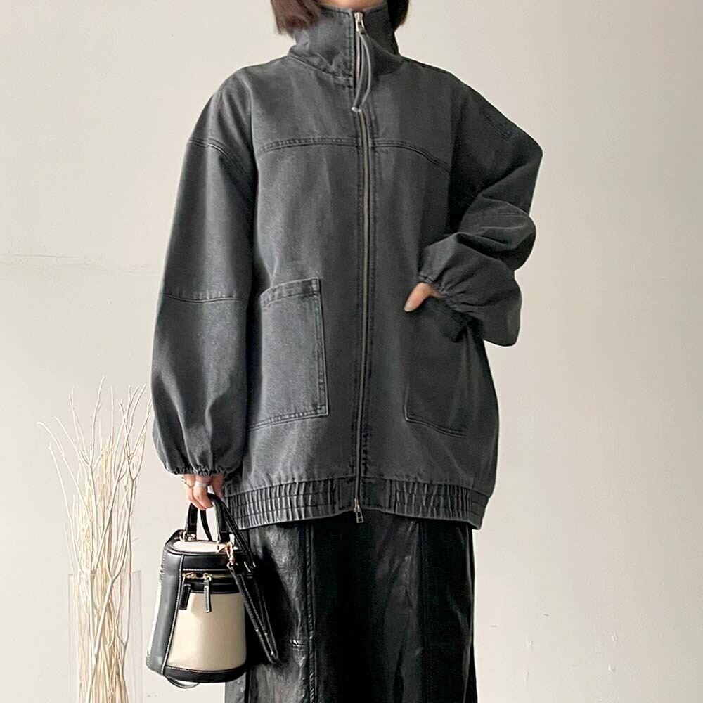 ゆったりとしたサイズ感のデニムスタンドブルゾン