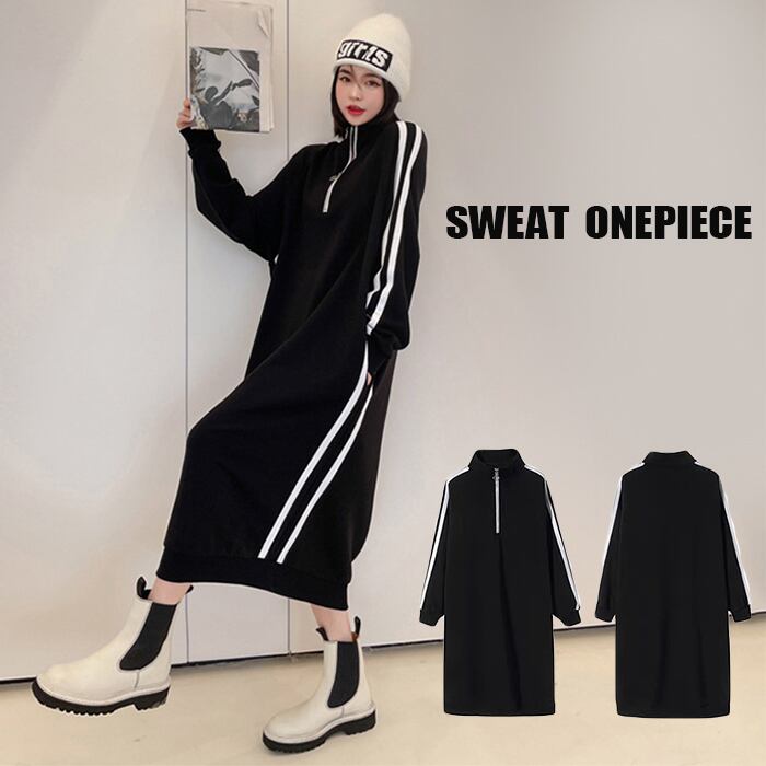 サイドラインがポイント ハーフジップスウェットワンピース