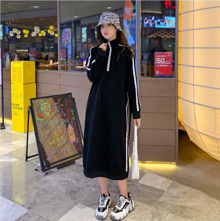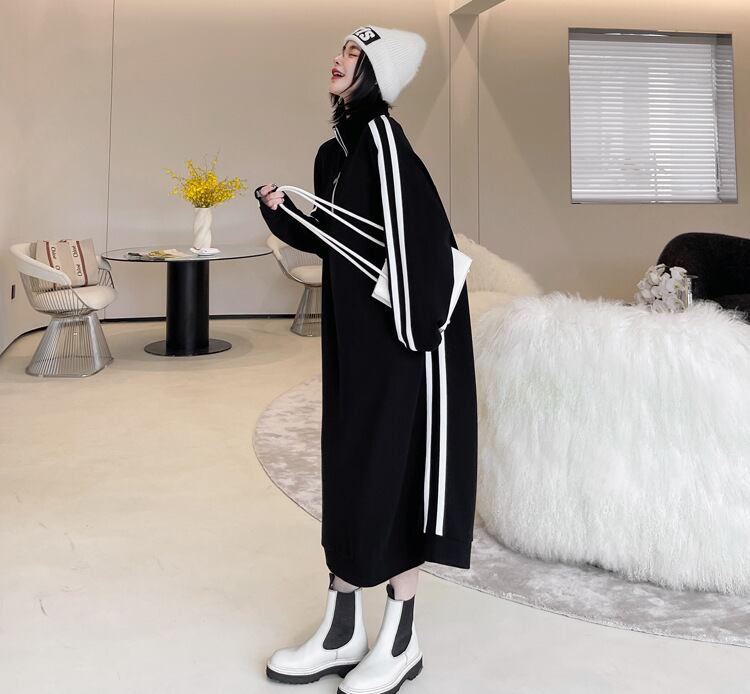 ## 2024新作 スウェットワンピース ハーフジップ ジャージ ワンピース トレーナーワンピ 黒