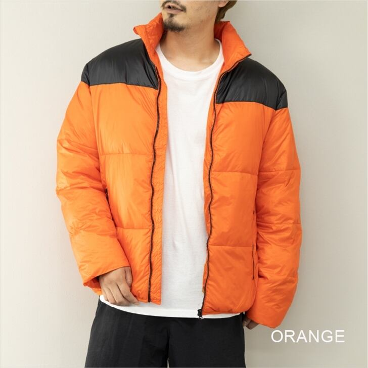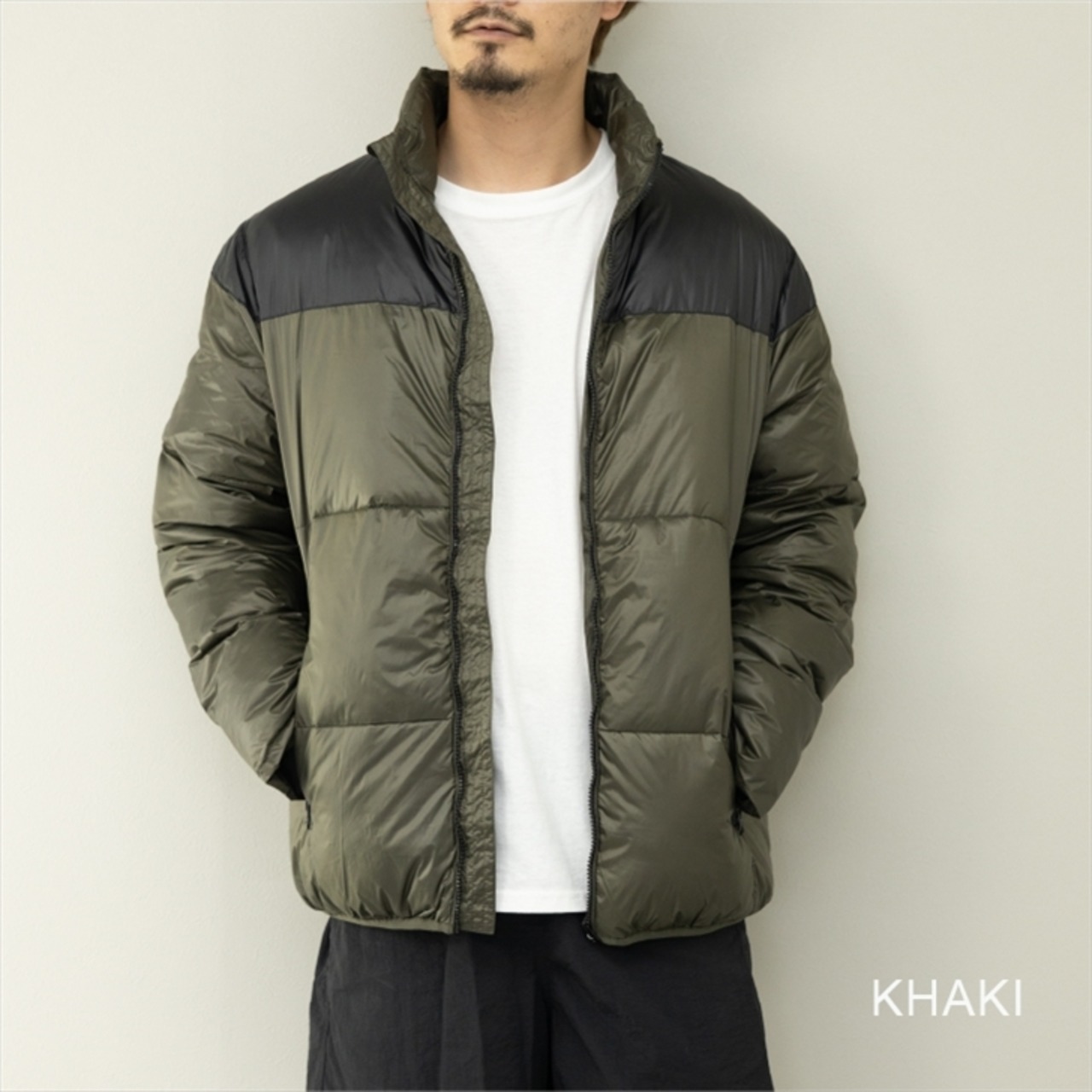 アウトドアアイテムを彷彿とさせるカラーリング、ヨーク切り替えが特徴のダウンブルゾン。