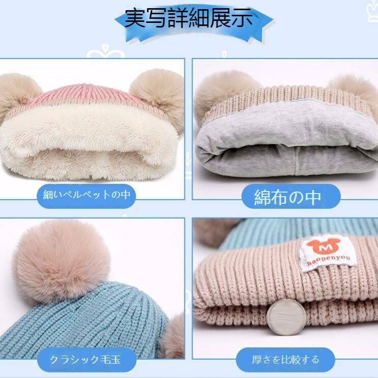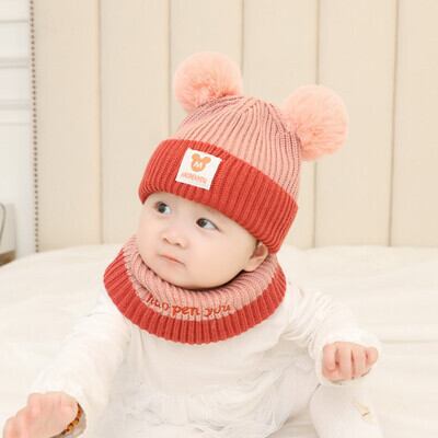 ベビーハット 秋冬 男性 女性 子供 ニット帽子 防寒 暖かい 子供用帽子 ツーピーススカーフ