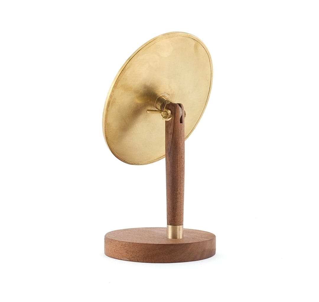 ミラーのフレーム部分・背面部分にはブラスを、台座にはアカシアウッドを使用しています。