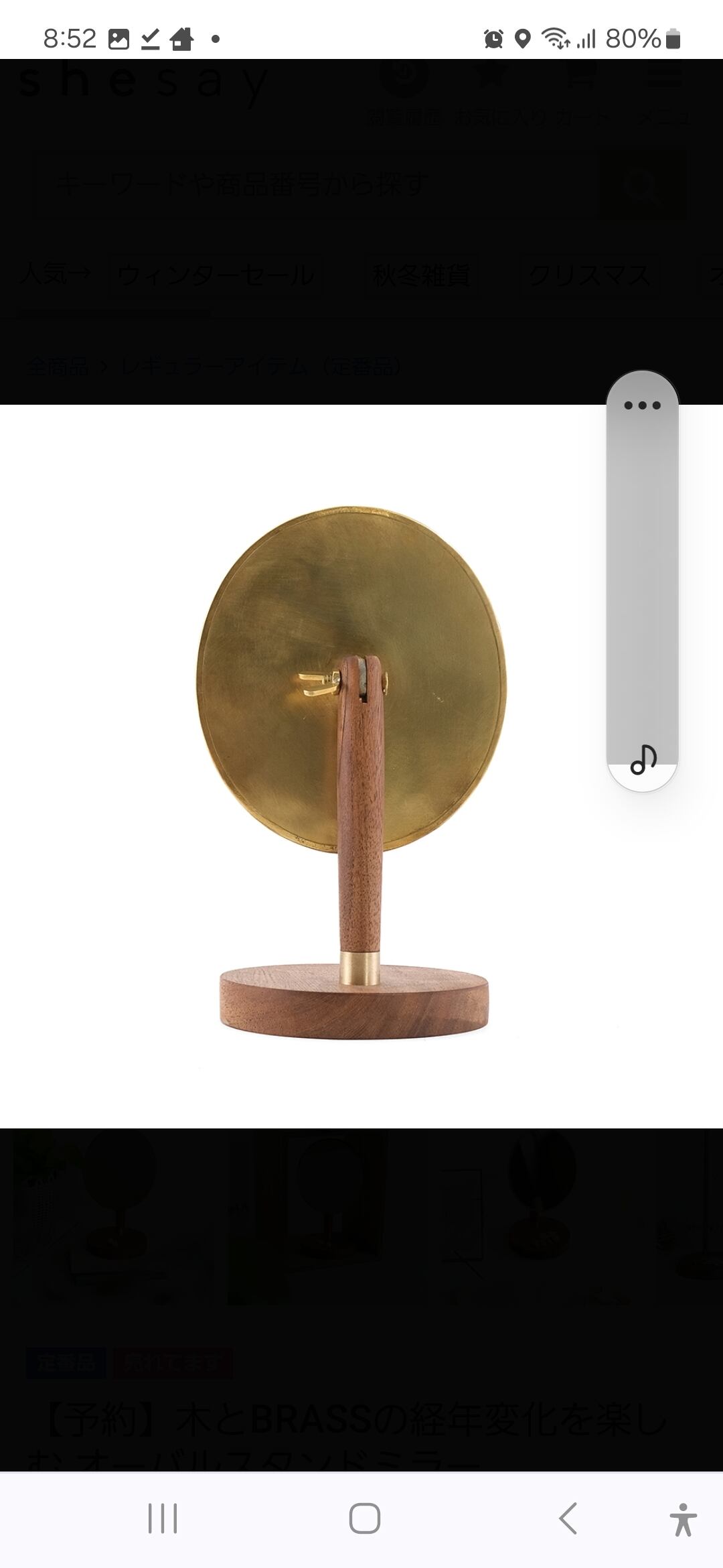 木とBRASSの経年変化を楽しむ オーバルスタンドミラー