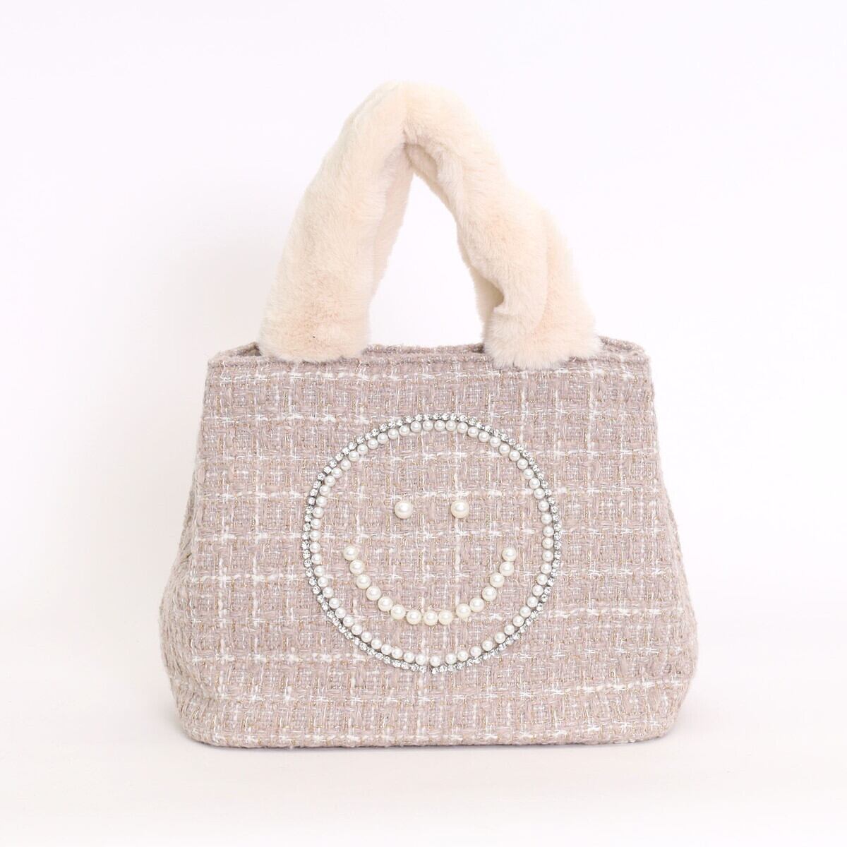 2024新作【クーコ COOCO】SMILEYパール刺繍xエコファーツイードトートバッグ