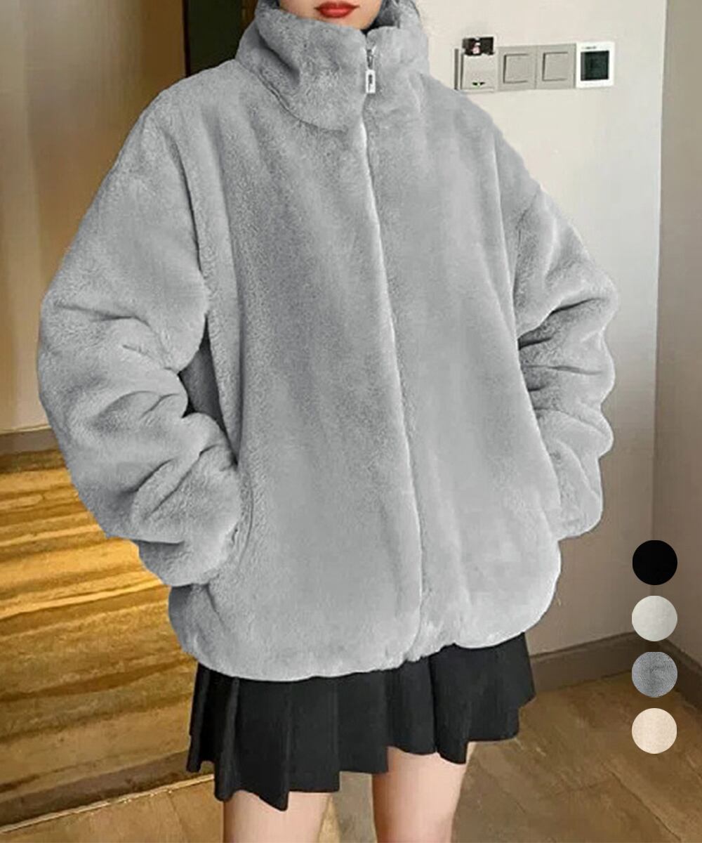 ジッパーボアブルゾン薄中綿 ふわふわボアカーディガン 暖かい モコモコフリースジャケット カジュアル ハイネックアウター