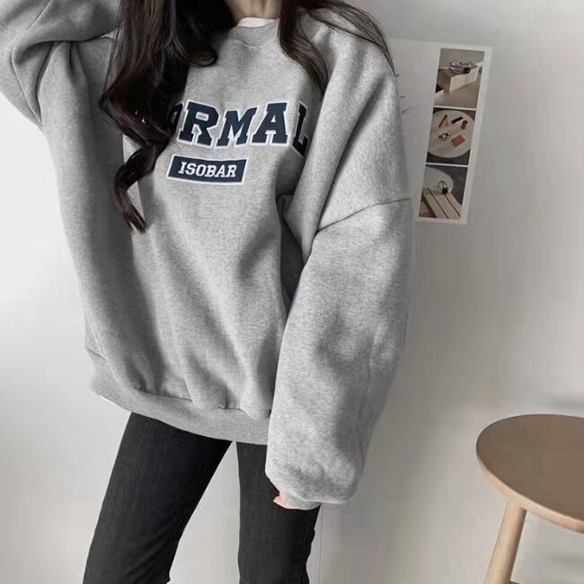 パーカー ゆったりスウェット スウェット あったかルームウェアグレーのキャップなしクルーネックにスエードのパーカー女性ゆったりミディアム秋冬厚めbfけだるい長袖トップス