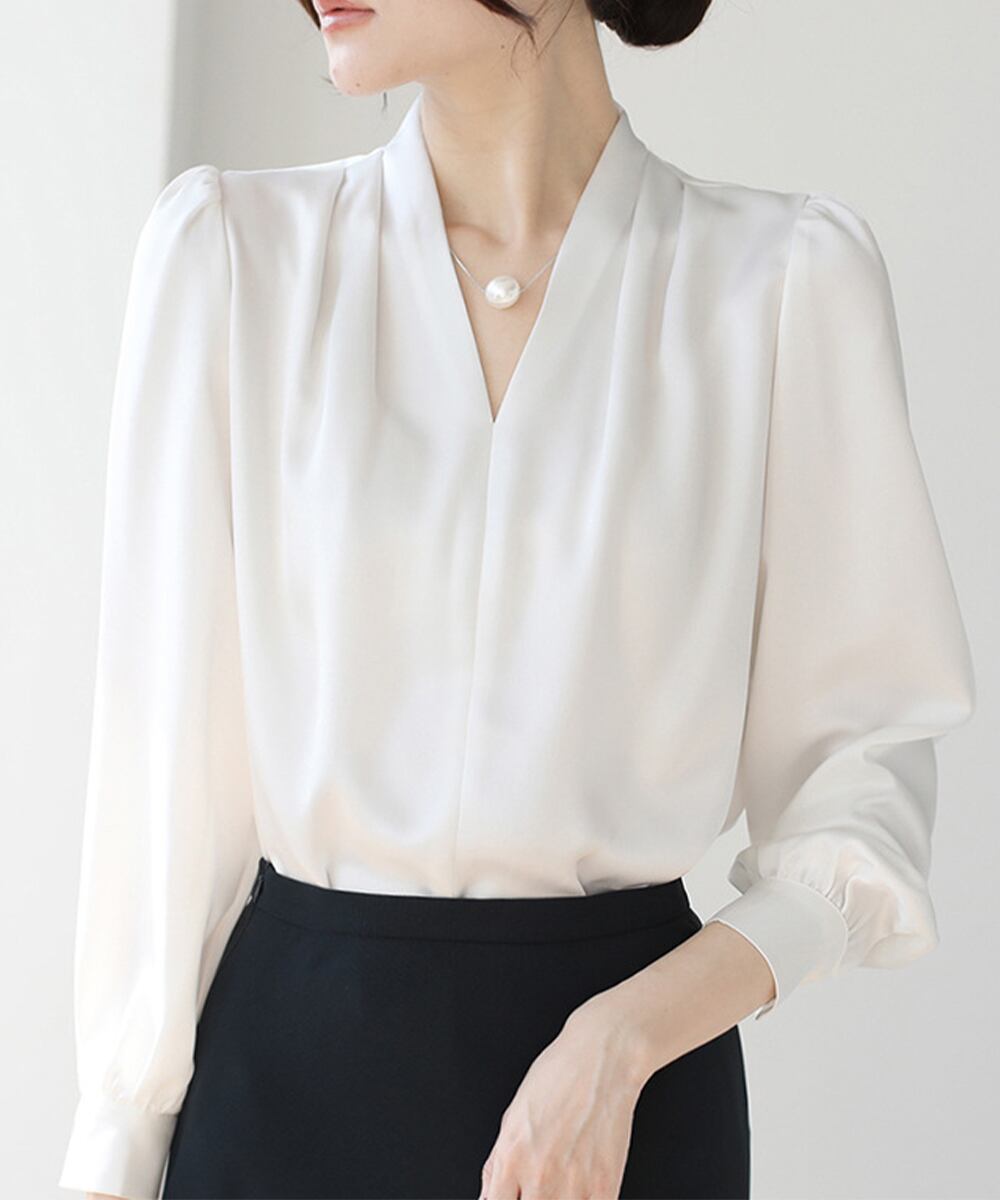 1枚で着るのはもちろん、ジャケットやカーディガンのインナーとしても使える万能なキレイめブラウス