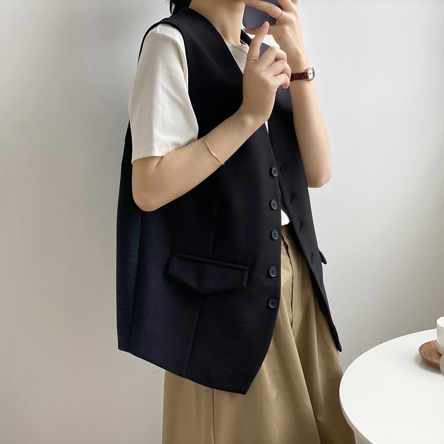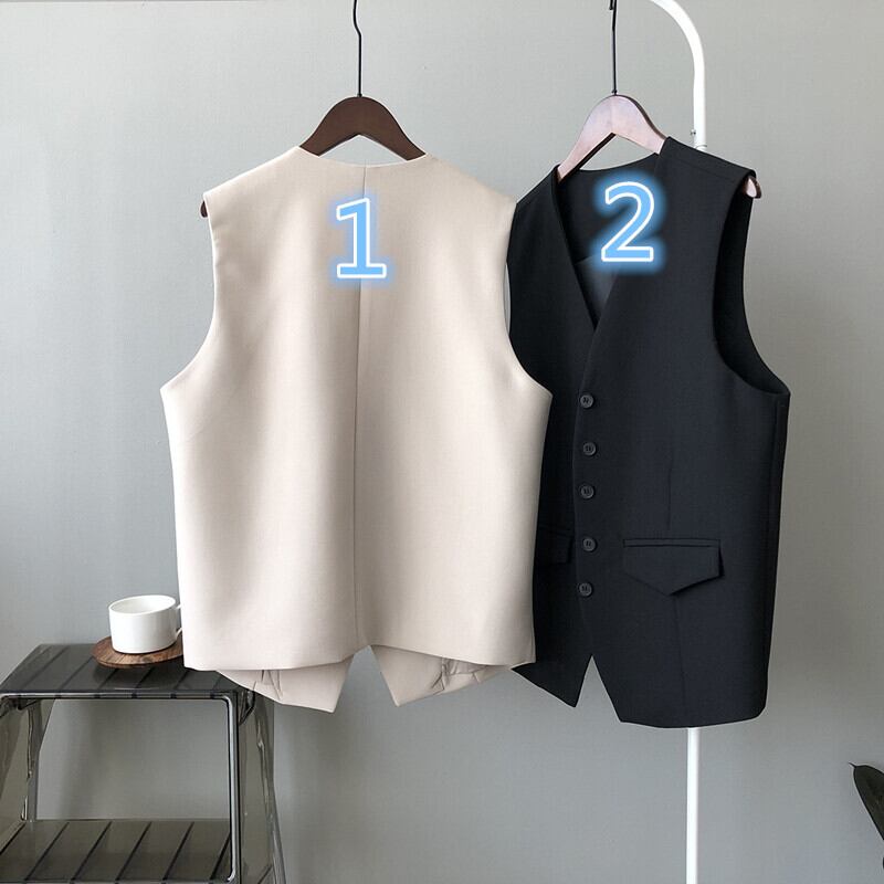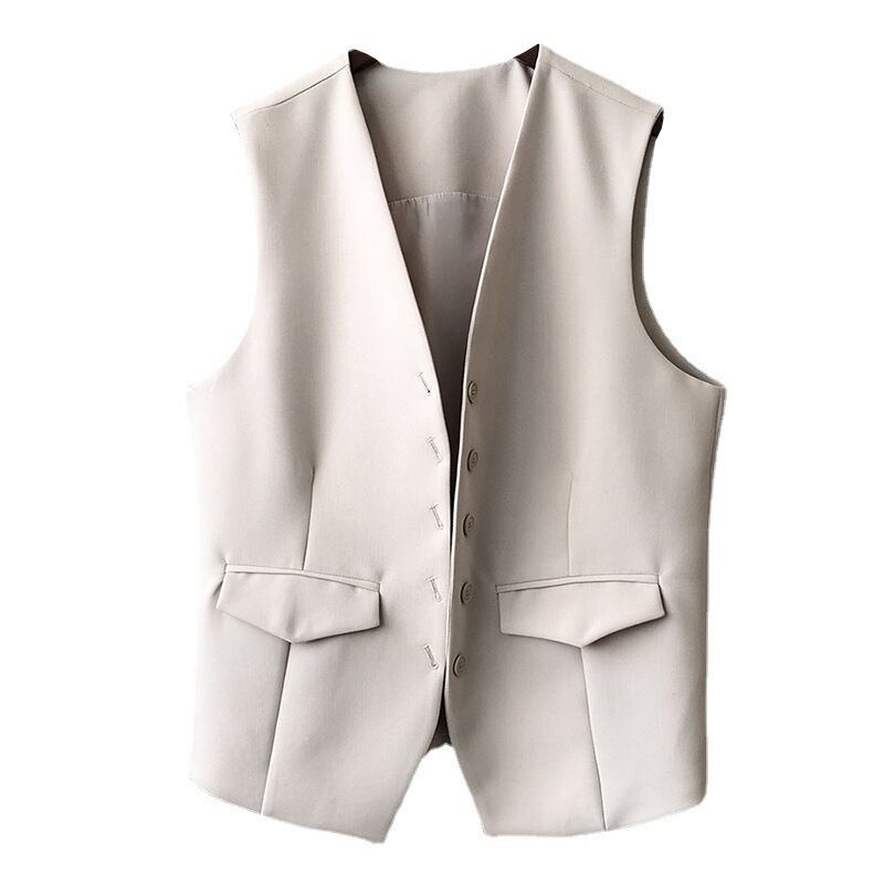 袖なし ゆったりする 気質 カジュアル スーツ ベスト 女性 Vネック 単体ボタン 百掛け