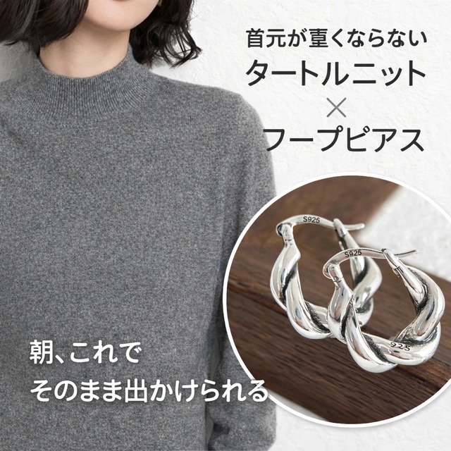 【首元きれい見え】やさしいタートルニット × S925ツイストフープ